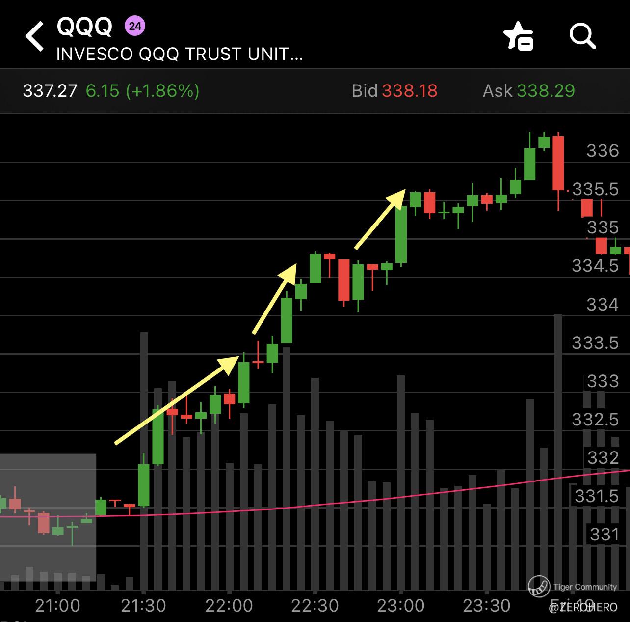 51% gain within 90 mins from taking 3 calls after each breakout from open. QQQ retraced after mid day and broke above 338 after hours. We may see another round of squeeze as bears need to close their puts while bulls join in the bandwagon causing more power surge ahead 🤫