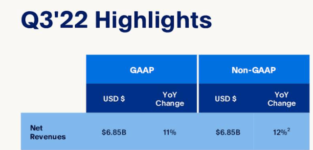 We have real GDP growth of around 2% and inflation measures near 9%. So nominal GDP is rising at a 11% rate. For a transaction processor, a 11% revenue run-rate is about as mediocre as you can get in this environment and that is what PYPL delivered. A perfectly middling experience. The stock was down as other sales metric were notably weaker including total payment volume that slipped quarter over quarter.