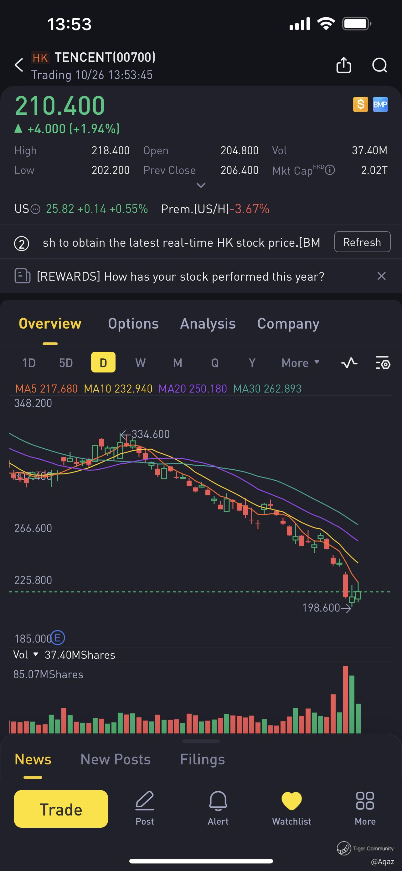 🇭🇰Hong Kong's Heng Seng Index rises +2.5% now. Investors' confidence is back. $Tencent(00700)$ is $210.4 now, up +1.94%, looks like It is out of the pit and a good catch now. $Nio Inc.(NIo)$ is up 15% and $XPENG-W(09868)$ gained +10.28%.